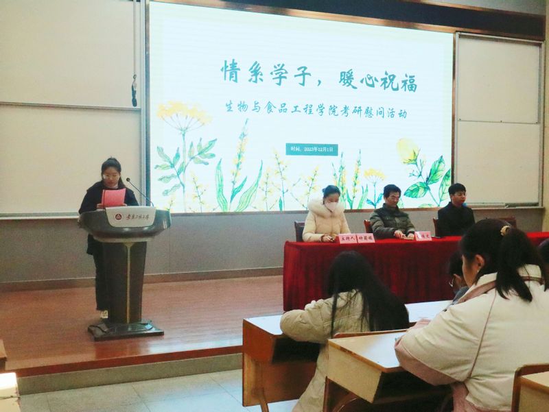 为缓解考研学子压力,坚定考生冲刺信心,121日上午,生物与食品工程学院在2教报告厅举办了“情系学子 暖心祝福”考研慰问主题党日活动,学院党委书记余传文、辅导员李良渊及2024届全体考研备考生出席参加本次活动。活动由毕业班辅导员钟莉娟主持。