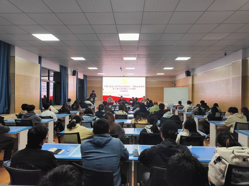 11月20日,生物与食品工程学院分党校在学院虚拟仿真中心举办第十一期发展对象暨第十期入党积极分子培训班结业典礼。本期培训班全体学员参加结业典礼,学院党委副书记王彦青、学院团委负责人、辅导员代表出席典礼,典礼由培训班班主任王玲玲主持。